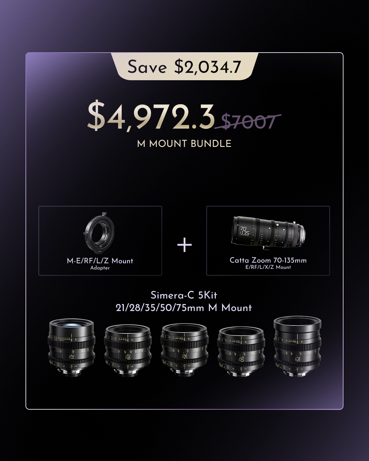 More Value in One Kit: Limited-time offer: Purchase now to receive the complete system for transitioning from cinematic prime lenses to zoom photography.Save more and shoot better. Save 30% When Bundled.