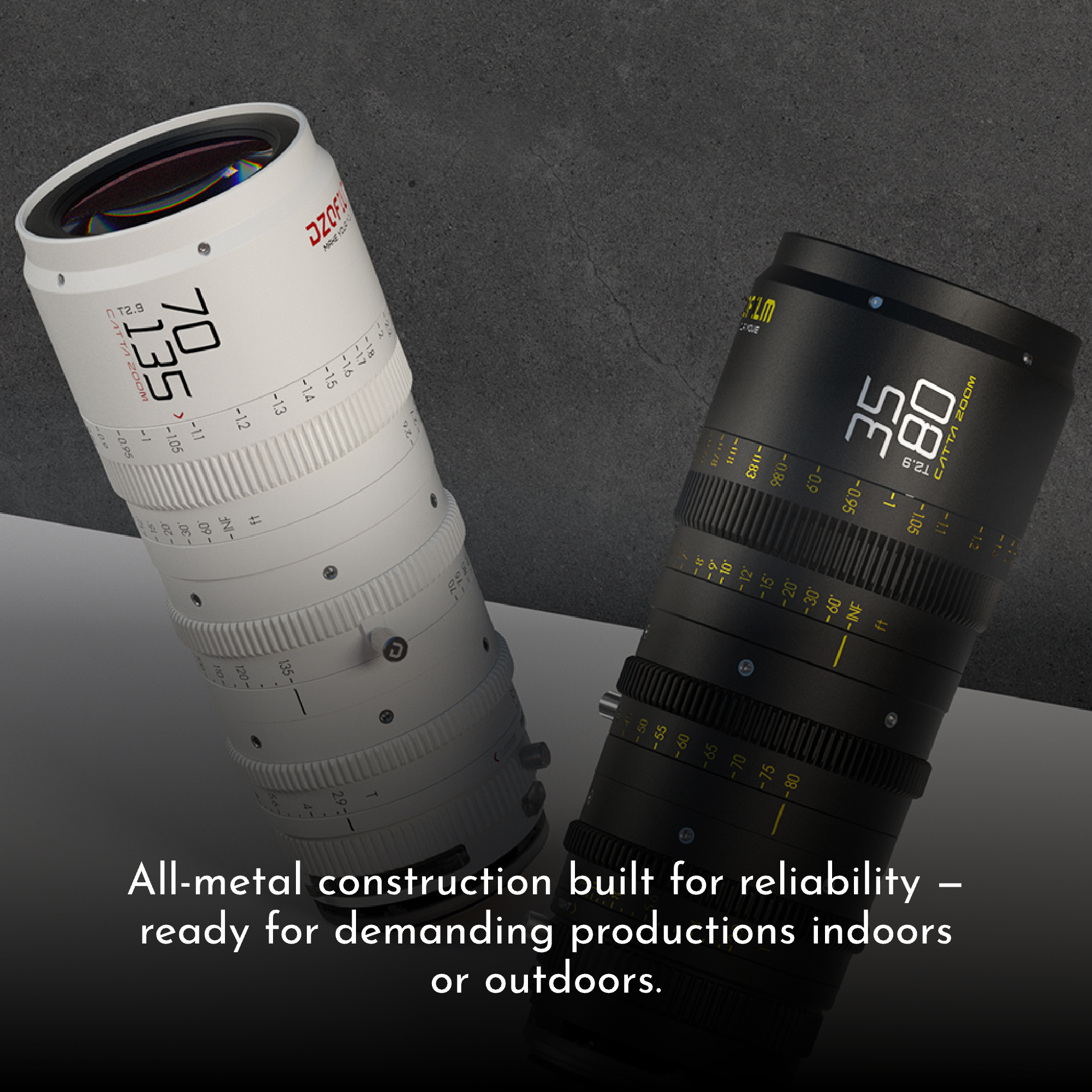 DZOFILM Catta Zoom 70-135mm delivers smooth parfocal performance, minimal focus breathing, and consistent T2.9 aperture. DZOFILM Catta Zoom features a multi-mount interchangeable design (PL/EF/E/RF/L/X), enabling flexible compatibility with different camera systems. Equipped with a long-stroke gear ring (for focus/aperture/zoom), it supports follow-focus systems, delivering a smooth operating feel and professional handling experience. Lighter than traditional cinema lenses, it excels in handheld, shoulder-mounted, and gimbal shooting scenarios.